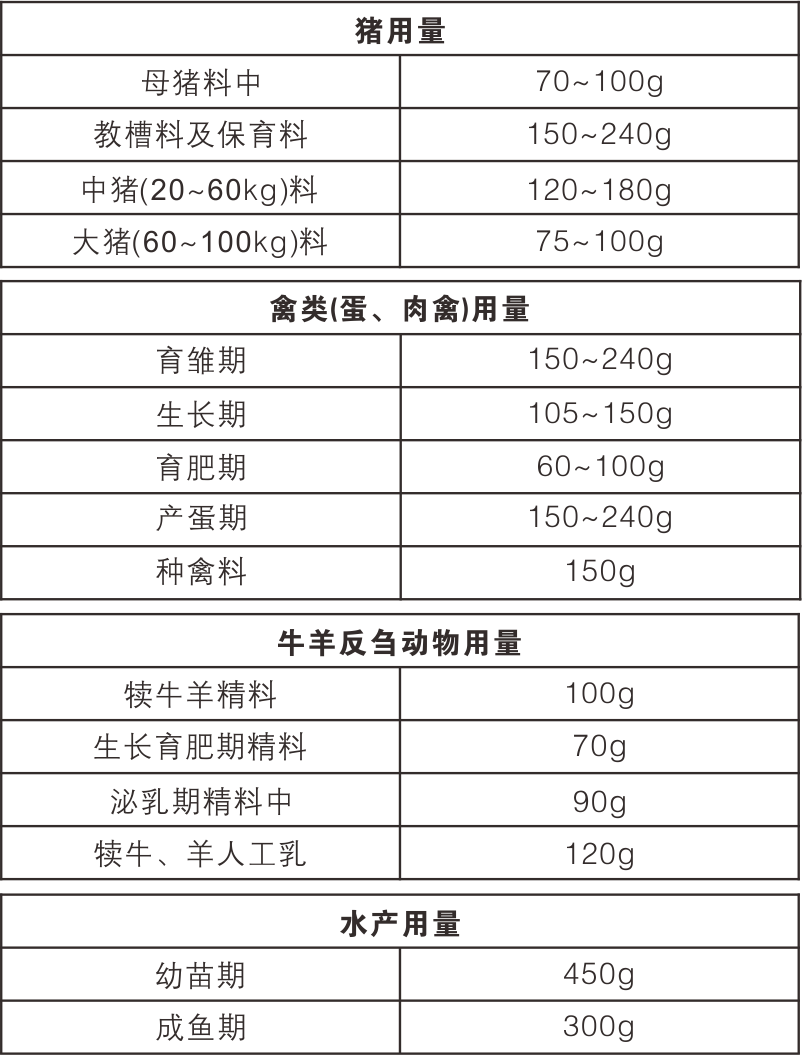 【用法用量】饲料/吨。